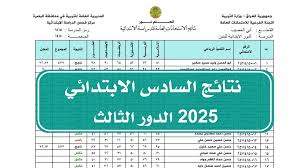 نتائج السادس الابتدائي الدور الثالث 2025 pdf