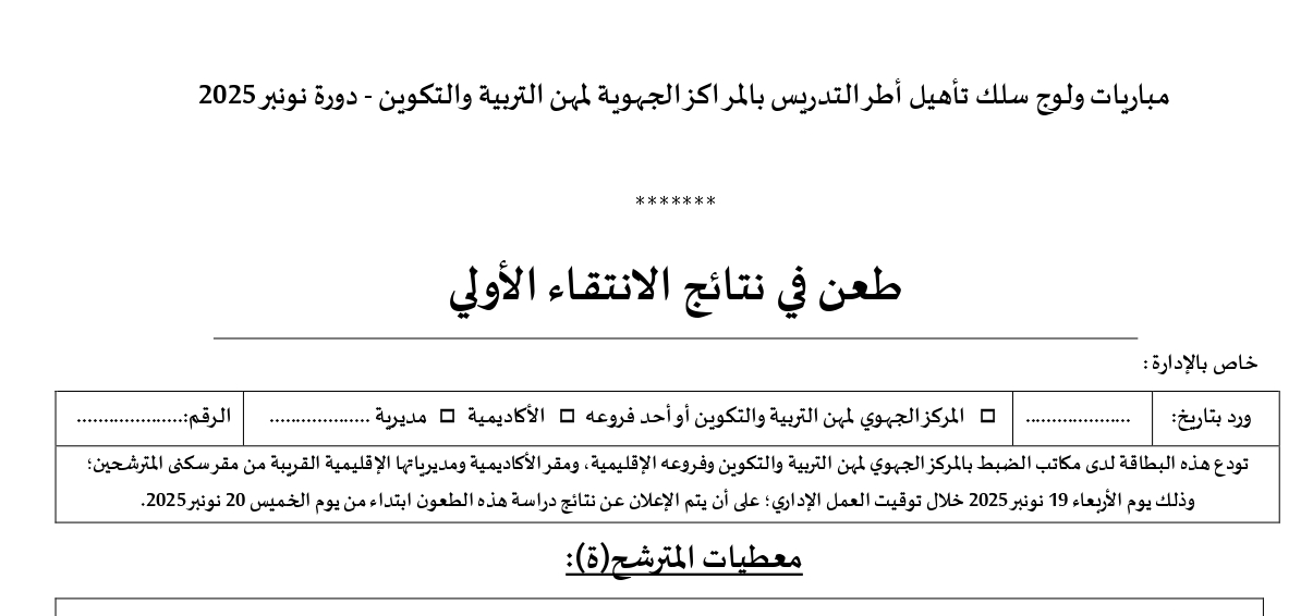 رابط تقديم طعن على نتائج مباراة التعليم الأولي 2025